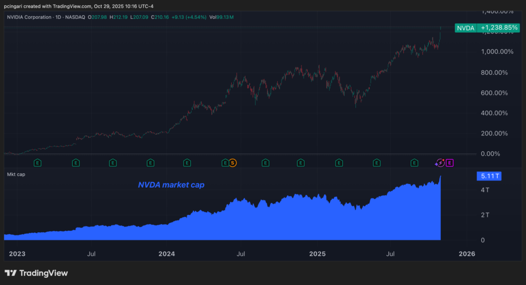 Nella giornata di oggi, Nvidia Corp (NVDA) ha riscritto la storia diventando la prima azienda del mondo con una valutazione di 5 mila miliardi di dollari, ma secondo Bank of America il colosso dei chip per l’intelligenza artificiale ha ancora molta benzina da poter bruciare.