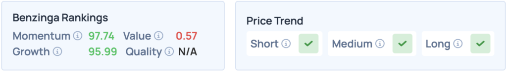 Il titolo registra punteggi elevati in termini di momentum e crescita nell’Edge Stock Rankings di Benzinga, con un andamento favorevole dei prezzi nel breve, medio e lungo termine. Clicca qui per approfondimenti sul titolo, sui suoi pari e sui suoi concorrenti.